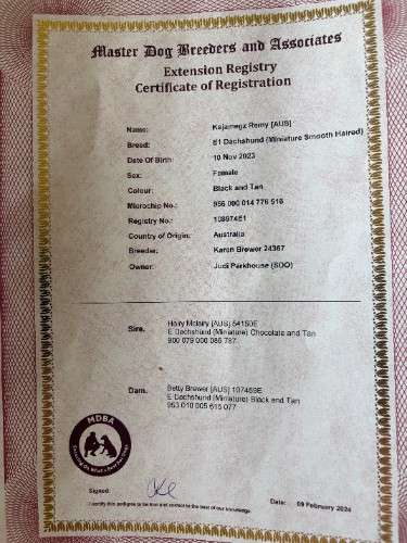 Born on 4th September 2025, we have 2 male puppies for sale who are both Tan colored. Father is Louie and Mother, Kajamegza Remy is registered. This will be our first and last litter of puppies as we want our dogs as pets, not breeders. As you can see in the photos both parents and puppies are part of our family and are well loved and played with by us all. We only ask that they go to good homes and are loved. They all have such beautiful personalities and are so entertaining when they play. Puppies are vaccinated, microchipped and vet checked.