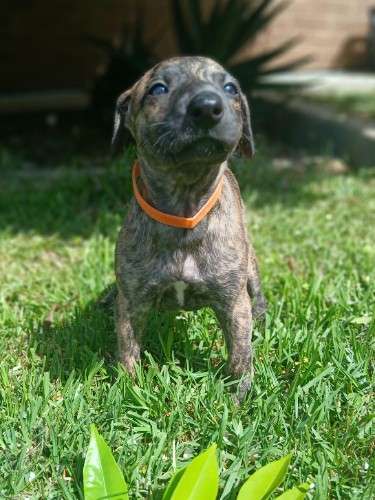 Bridie is the brindle just like a little tiger